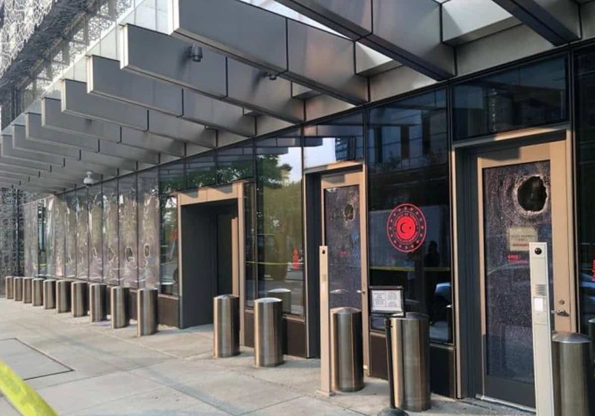 وقال أوزغور، إن ما مجموعه 12 نافذة، بما في ذلك نافذتان لباب القنصلية و10 نوافذ للواجهة، تضرّرت نتيجة الهجوم، مضيفاً أنه تمّ إبلاغ إدارة شرطة نيويورك على الفور، وتمّ إحضار فريق الشرطة إلى مكان الحادث.