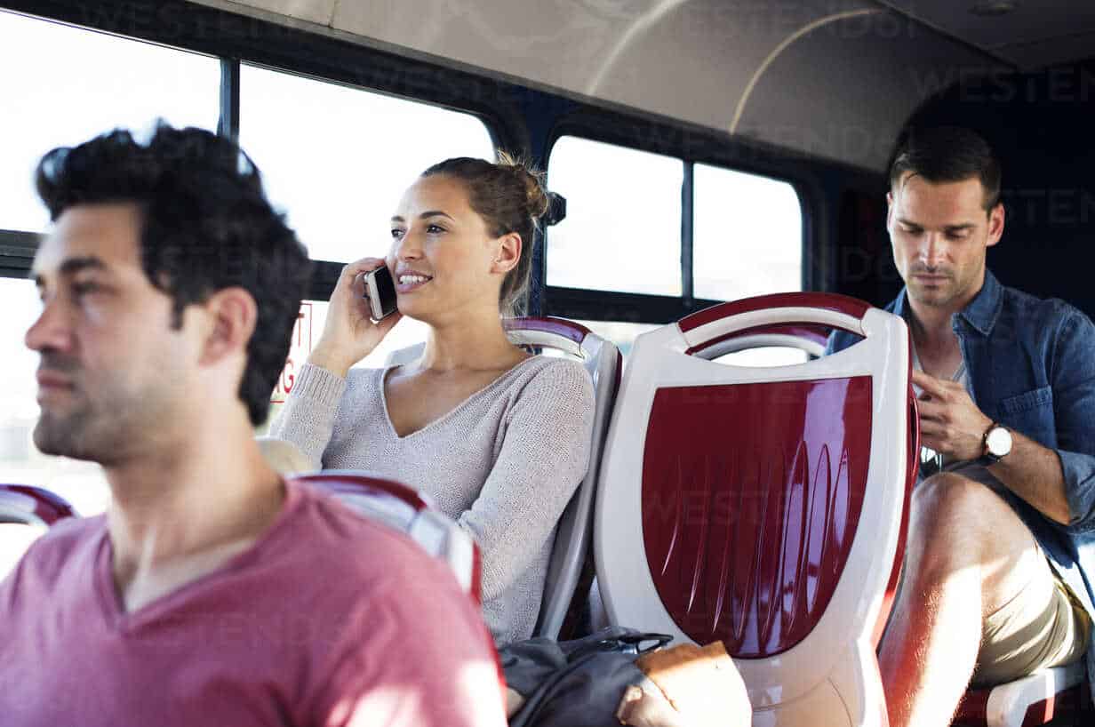 قد تميل إلى استخدام وقت جلوسك في الحافلة أو في القطار لإجراء مكالمات معينة، ولكن يجب عليك الالتزام بالرسائل النصية في أثناء استخدام وسائل النقل العام.