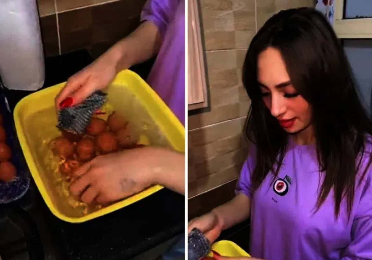 فيديو لسيدة تغسل البيض وتثير الجدل