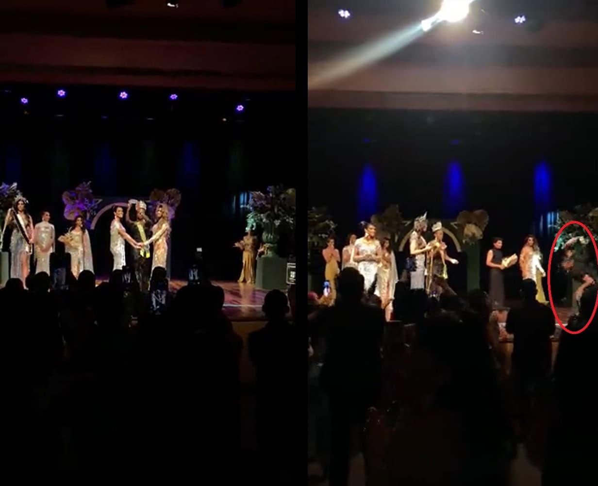 وقام الجمهور بتصوير اللحظة الأخيرة من المسابقة، وتمكّنوا من التقاط اللحظة بالضبط، عندما أخذ الرجل التاج من يد مقدم العرض ورماه أرضاً.