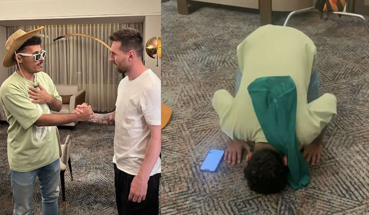 صاحب عبارة “وين ميسي” يسجد بعد التقاطه صوراً معه