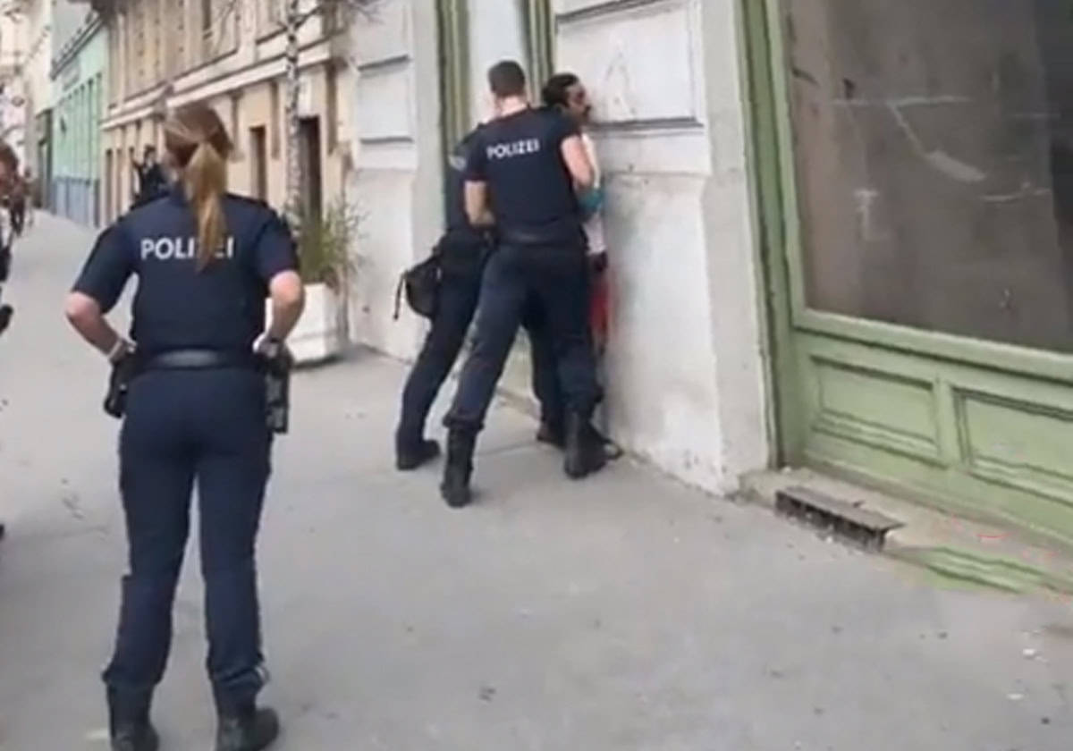 وبحسب وصف الفيديو المزعوم، فقد ظهر عدد من عناصر الشرطة النمساوية وهم يسيطرون على الشاب الإماراتي بتثبيته على جدار أحد المحال.