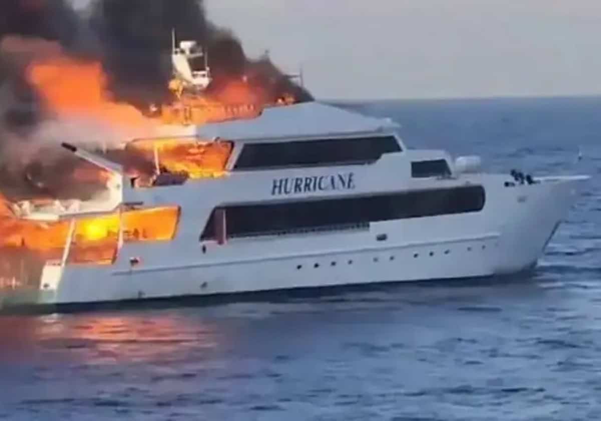 حريق مركب سفاري بطول ٤٠ متر اسمها hurricane في جنوب البحر الأحمر و بالتحديد منطقة Elphinstone و انقاذ معظم السياح فيما عدا ٣ لا يزالوا مفقودين و يعتقد ان جنسيتهم انجليز، نتمني السلامه للجميع و ربنا ينجي المفقودين.