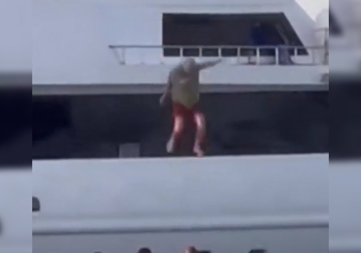 وبدا الناجي في الفيديو وهو يقف على حافة المركب، ويقفز وسط قارب مطاطي كان يضم عدداً من المنقذين.