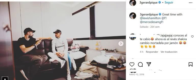 بعد الشائعات الأخيرة حول المغنية الكولومبية مع سائق الفورمولا 1، قام مستخدمو الشبكات الاجتماعية بنفض الغبار عن بعض الصور التي شاركها لاعب كرة القدم السابق على حسابه على انستجرام في مايو 2018، حيث شوهد مع لويس هاميلتون.