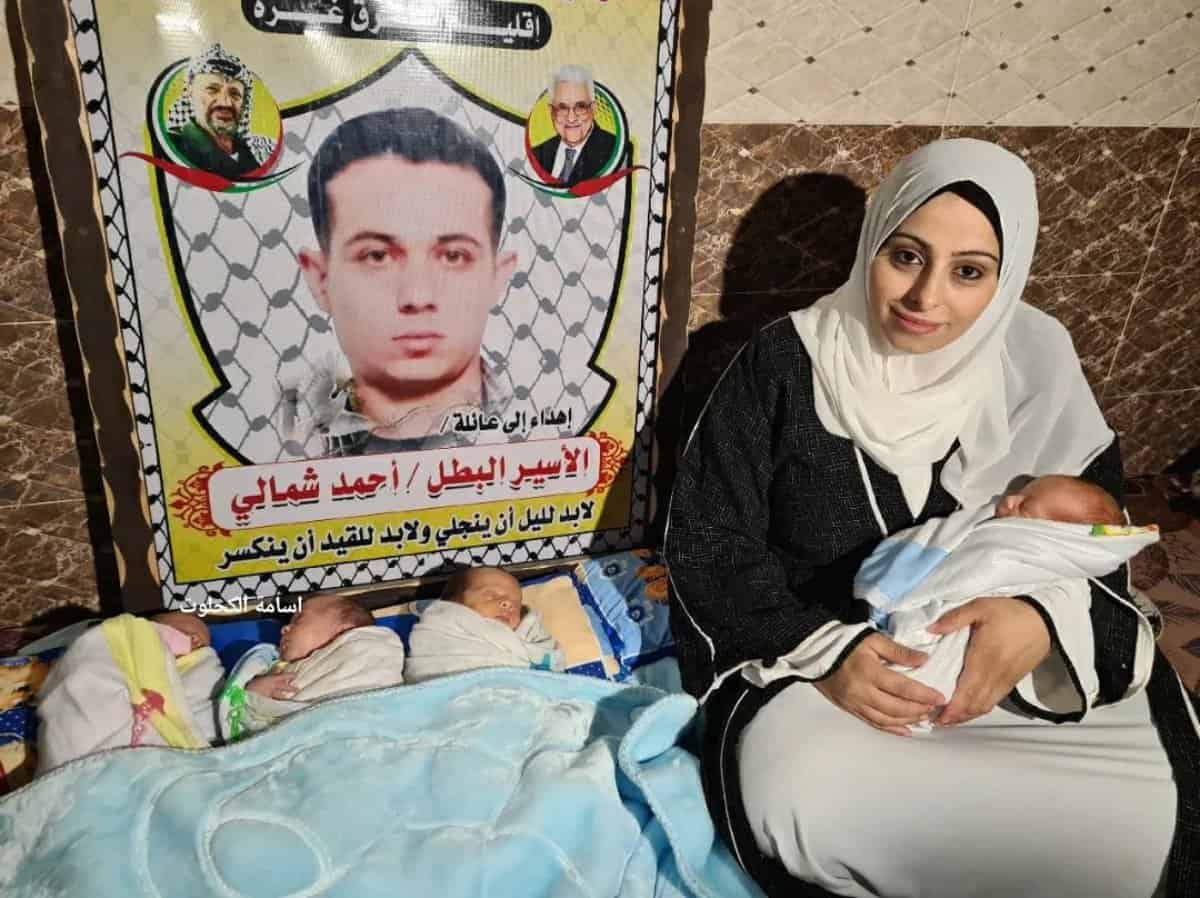 Ahmed Shamali, a Palestinian prisoner from Gaza who has been in Israeli jails for 15 years and has 3 years left until his release, has fathered quadruplets through smuggled sperm. pic.twitter.com/kp3lgHJDxx
