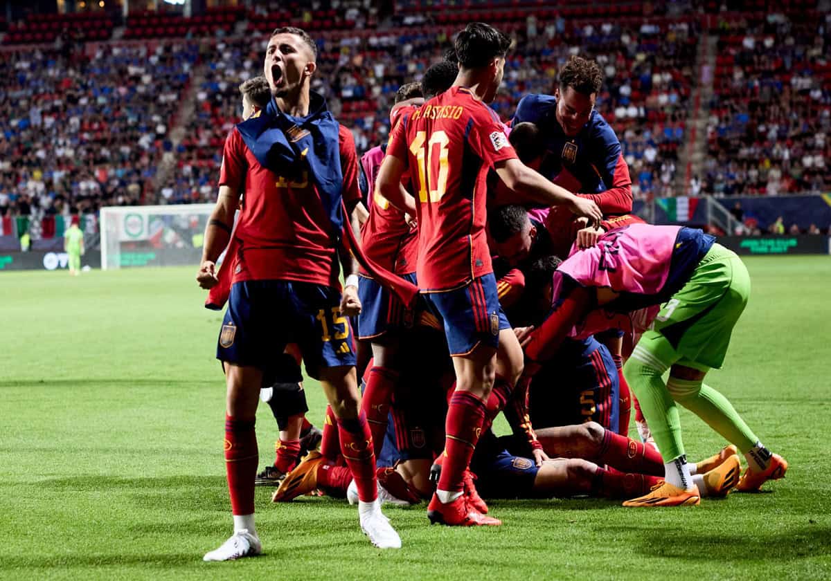 وطن- ضرب منتخب إسبانيا موعداً نارياً مع نظيره الكرواتي في نهائي بطولة دوري أمم أوروبا 2023، بعد هزيمة إيطاليا بهدفين ثمينين مقابل هدف وحيد في دور النصف النهائي على ملعب (دي غرولش فيسته).