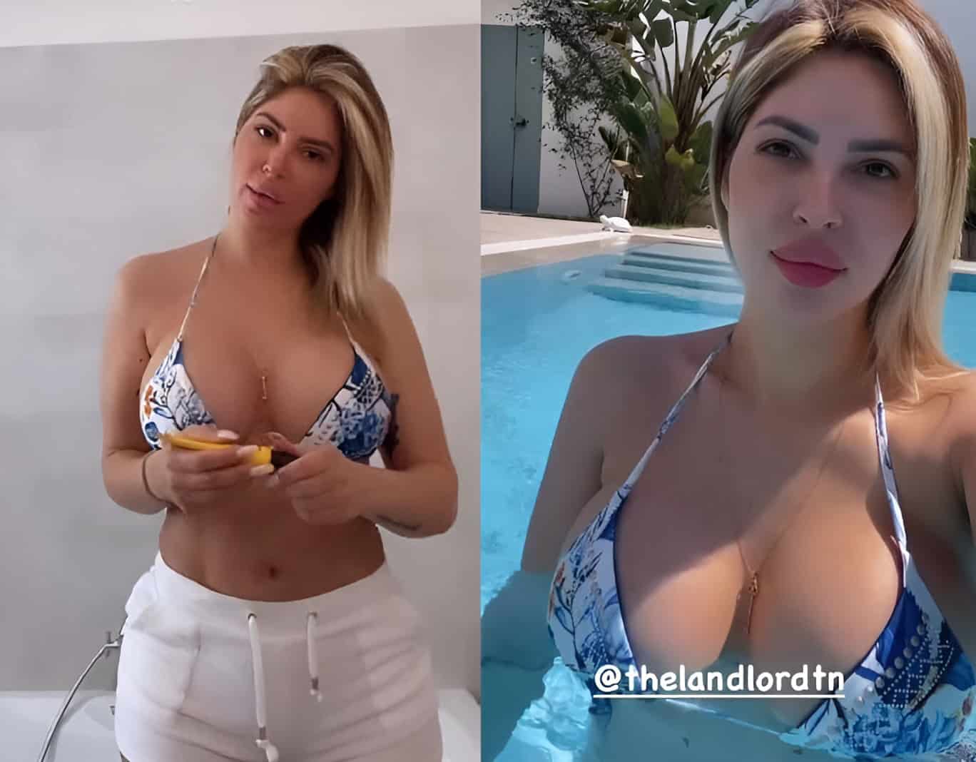 وظهرت مريم الدباغ، بحمالة صدر صغيرة بالكاد تغطي صدرها، مع هوت شورت أبيض، وهي تروج لأحد الفنادق في تونس.