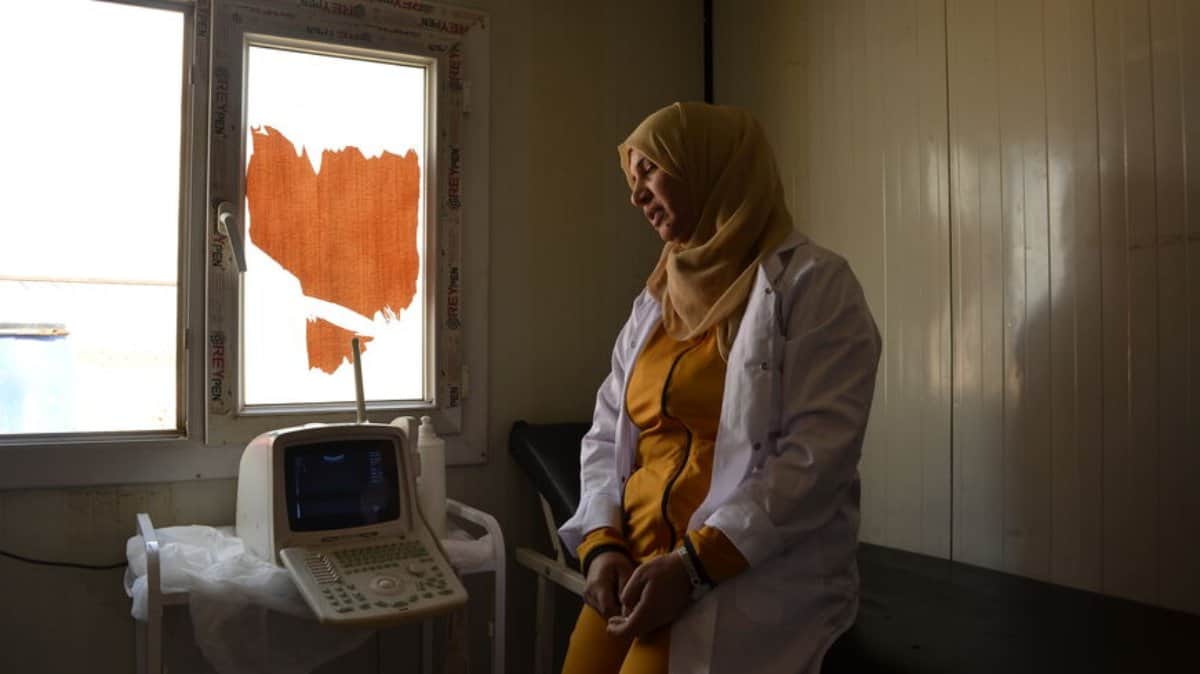 يسرا بلال العلي، تعمل في مناوبات لمدة 36 ساعة وتبقى في العيادة بين الاستشارات. في الليل، غالبًا ما تكون بمفردها في الخدمة، وتتحدث من داخل حجرة فحص صغيرة تقع داخل عيادة الهلال الأحمر الكردي: “أرى ما بين 30 إلى 40 امرأة حاملاً يوميًا لإجراء الفحص، وأتعامل مع ستة إلى تسعة ولادات في المتوسط”. يوجد في العيادة ثلاثة أسرة فقط، لذلك يتم إرسال النساء بسرعة بعد الولادة.