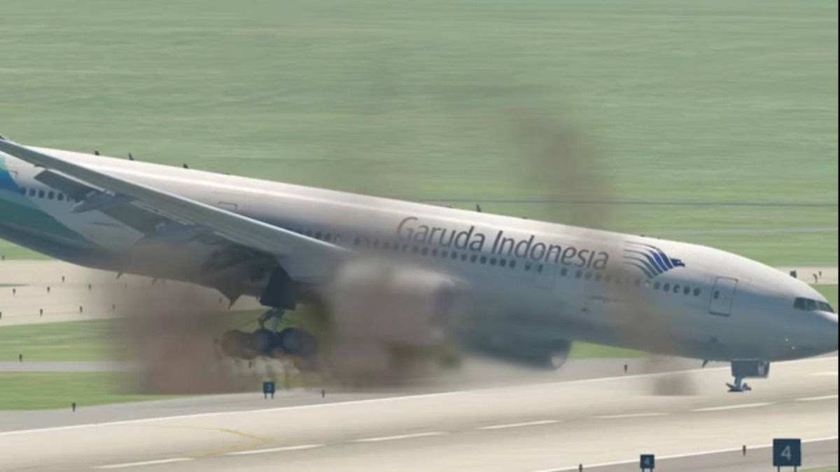 ويُصوّر الجزء الأول من الفيديو ما يبدو أنّها طائرة تجنح يميناً ويساراً ثم ترتطم بالمدرج مرارا، في حين يُظهر الجزء الثاني نزول ركاب من طائرة على نحو طارئ.