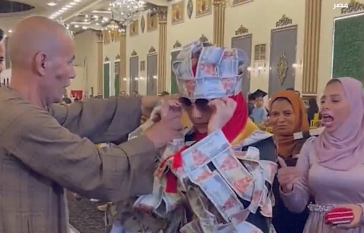 أب يثير جدلاً في مصر بعد تقديمه معطفاً مكوناً من النقود كهدية لابنته في حفل تخرجها