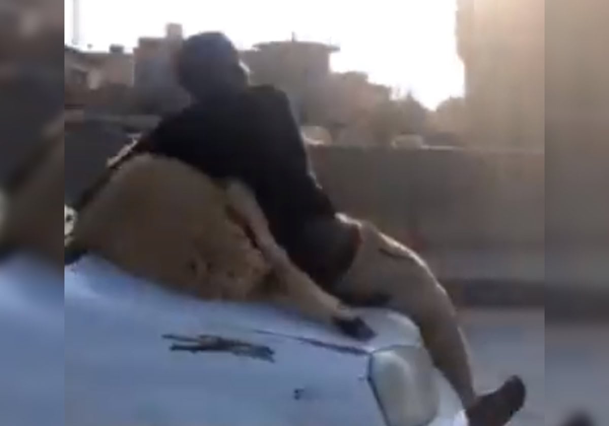 وأظهر مقطع فيديو نشرته حسابات ليبية على تويتر، شابا يجلس على مقدمة سيارة وقد وضع أمامه خروف العيد محاولاً تثبيته فيما بدت السيارة مسرعة.