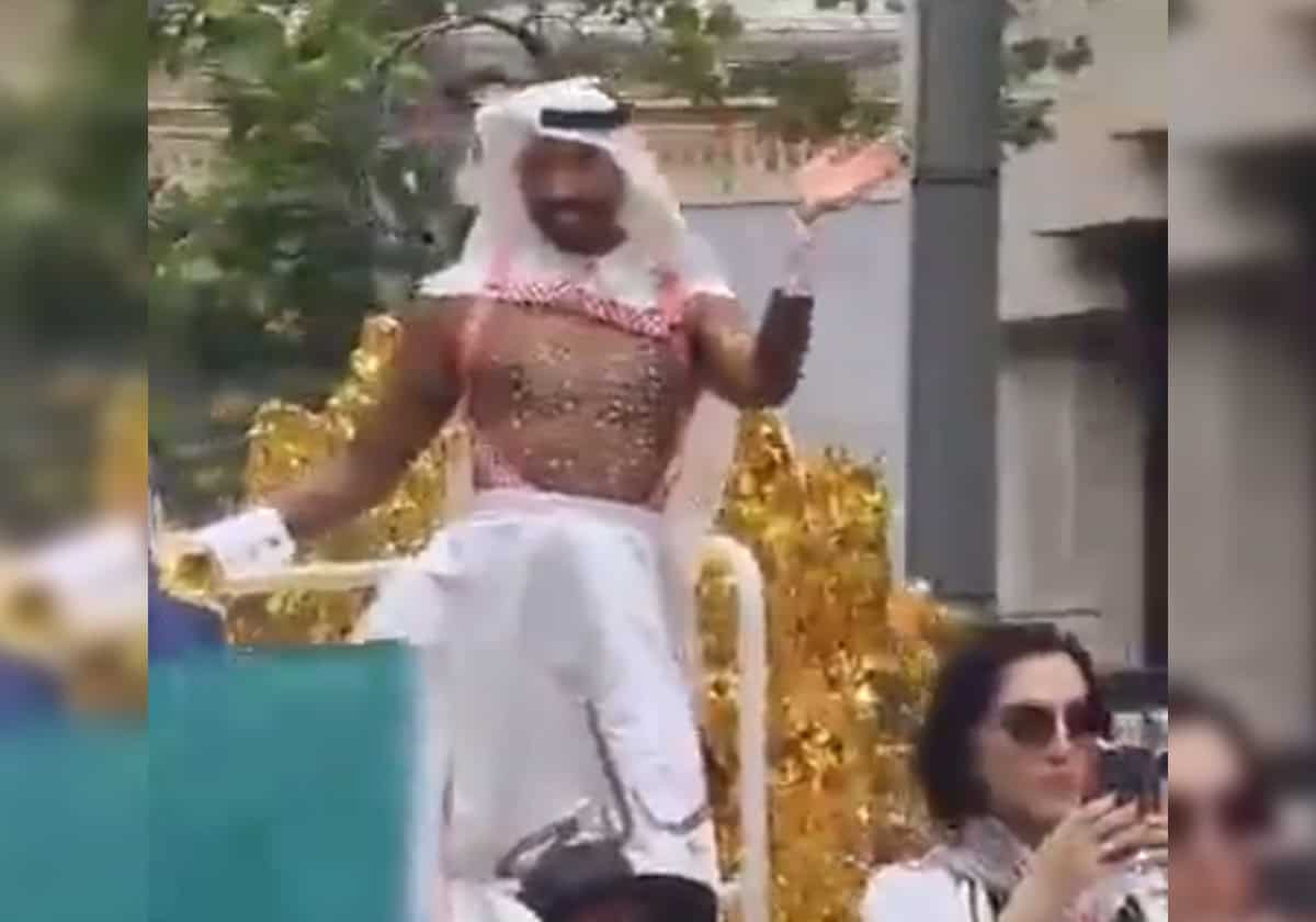اللافت أنه وفي لقطة فُهمت بأنها “استفزازية”، ظهر القطري مثلي الجنس وهو يتجول ضمن قافلة لما بات يعرف بمجتمع الميم في الولايات المتحدة الأمريكية مُلوحا بأعلام الخليج العربي، مثل السعودية والبحرين والكويت.