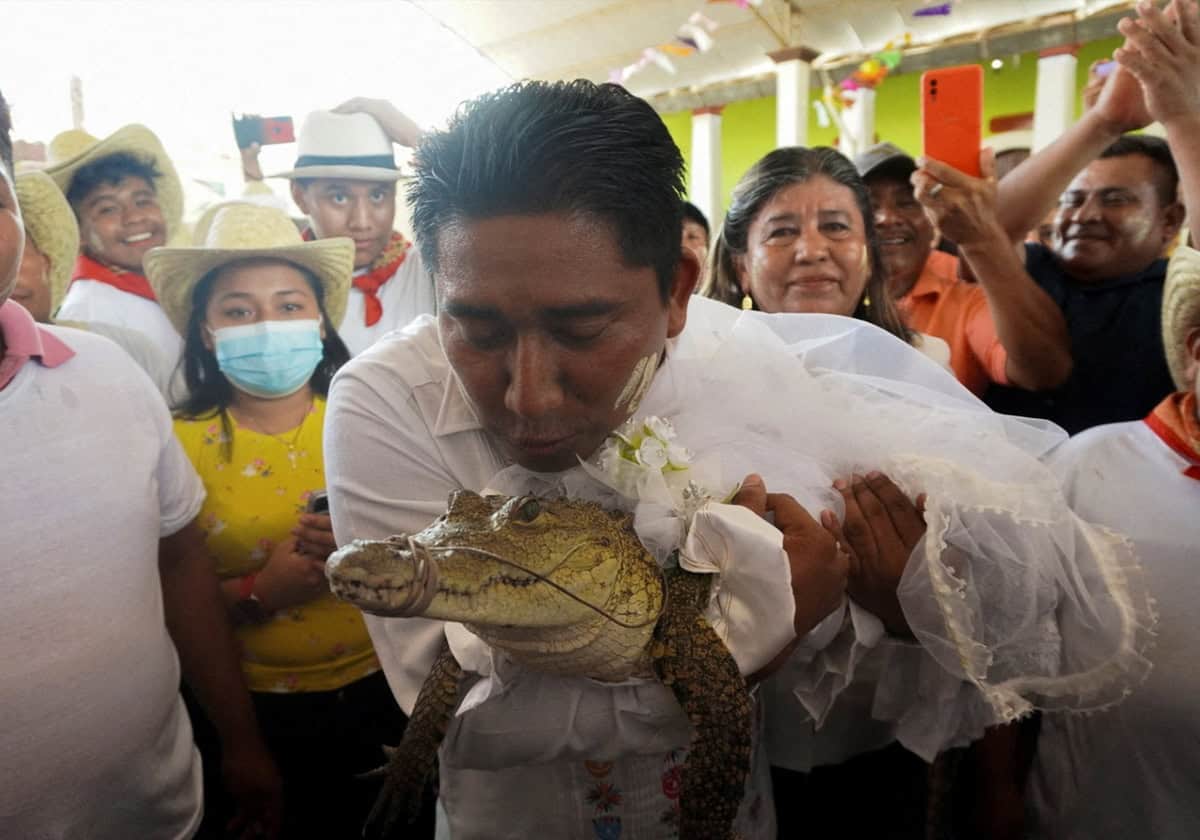 وطن- في ظاهرة لم تعد غريبة على المجتمعات الغربية والأمريكية التي تعاني من التفكك والفراغ النفسي، أعلن عن زواج مسؤول مكسيكي بتمساح وأقيم له عرس ومراسم تقليدية في ولاية واهاكا الواقعة جنوب البلاد.