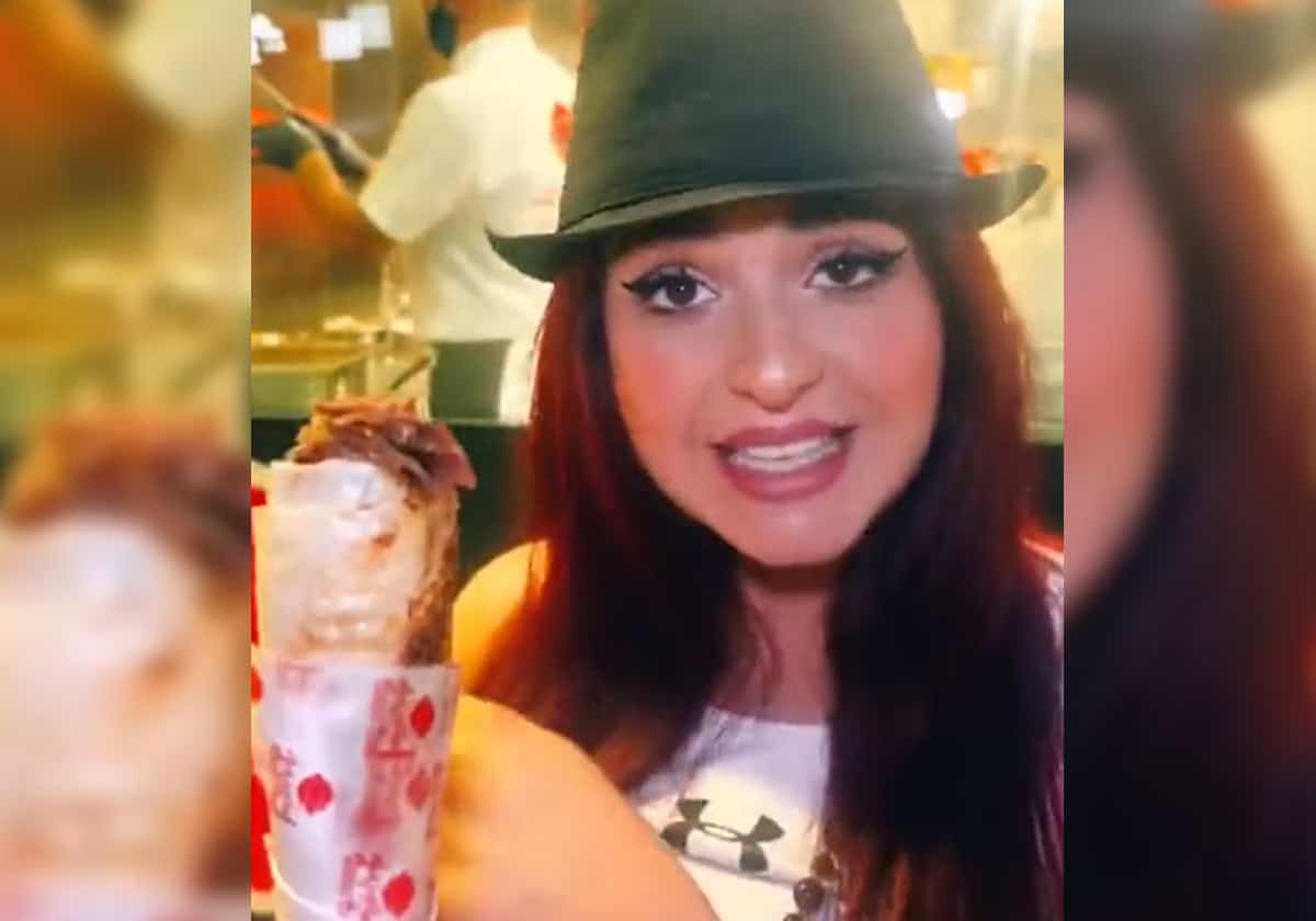 وظهرت فتاة ـ يبدو أنها منشئة محتوى ـ في مقطع الفيديو المتداول وهي تمسك بساندويتش وتقول:” يا جماعة هاي أغلى سندويتشة شاورما في العالم كله موجودة في دبي“.