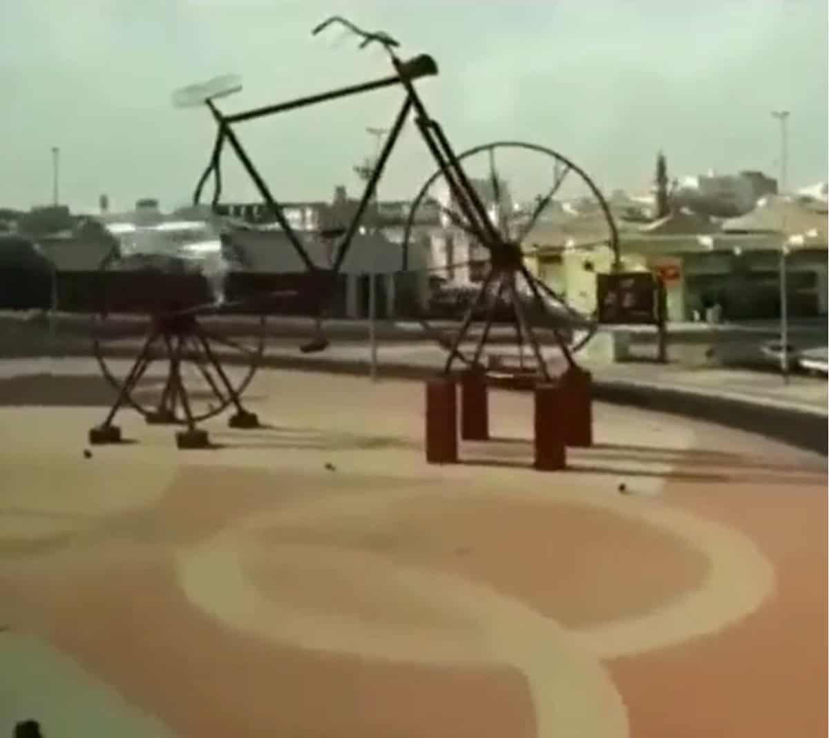 ونشر ناشط بتويتر يدعى “شريف حجازي” هذا المقطع، وزعم أنه هو من صمم هذا المجسم للدراجة الضخمة في السعودية.