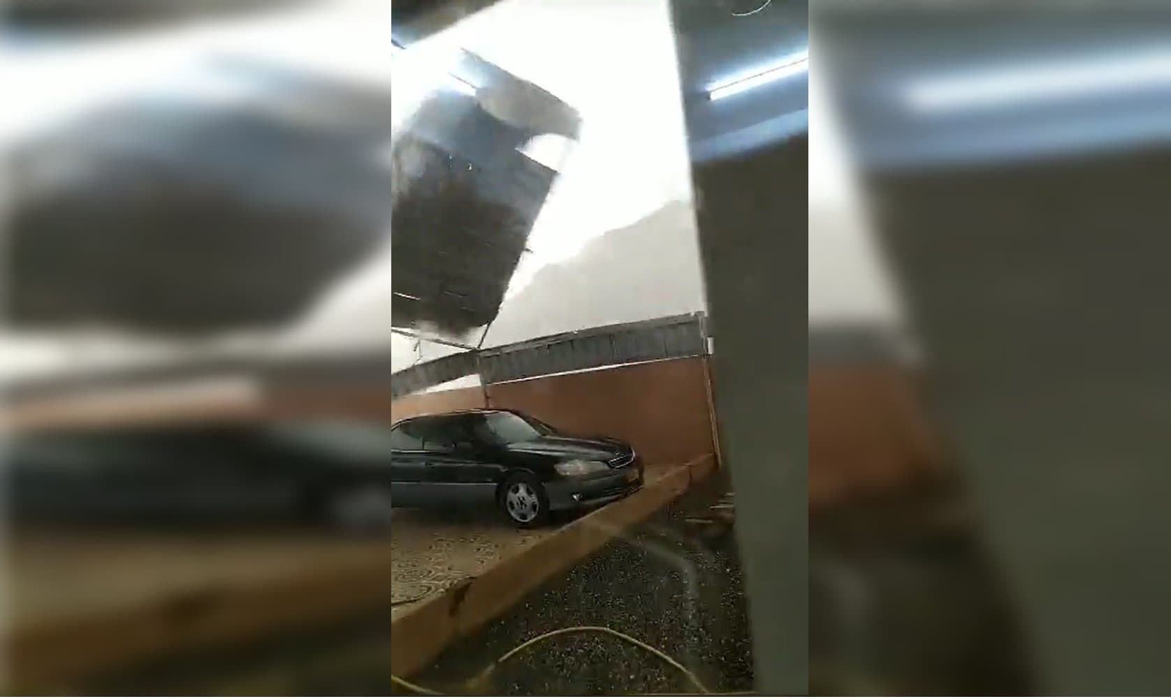 وظهر في الفيديو المتداول الذي رصدته” وطن” سيارة سوداء اللون في حديقة منزل وبدا سقف مرآبها وهو يتطاير من فوقها.