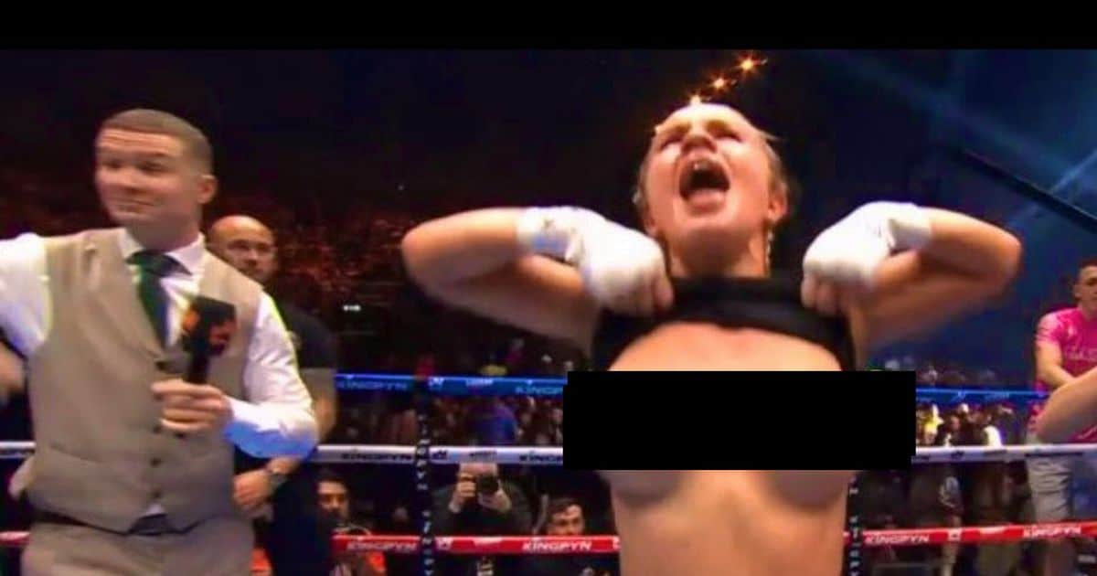 بعد الجرس الأخير، شرعت هيمسلي في رفع حمالة صدرها الرياضية كثيرًا لصدمة المشجعين الحاضرين في 3Arena.