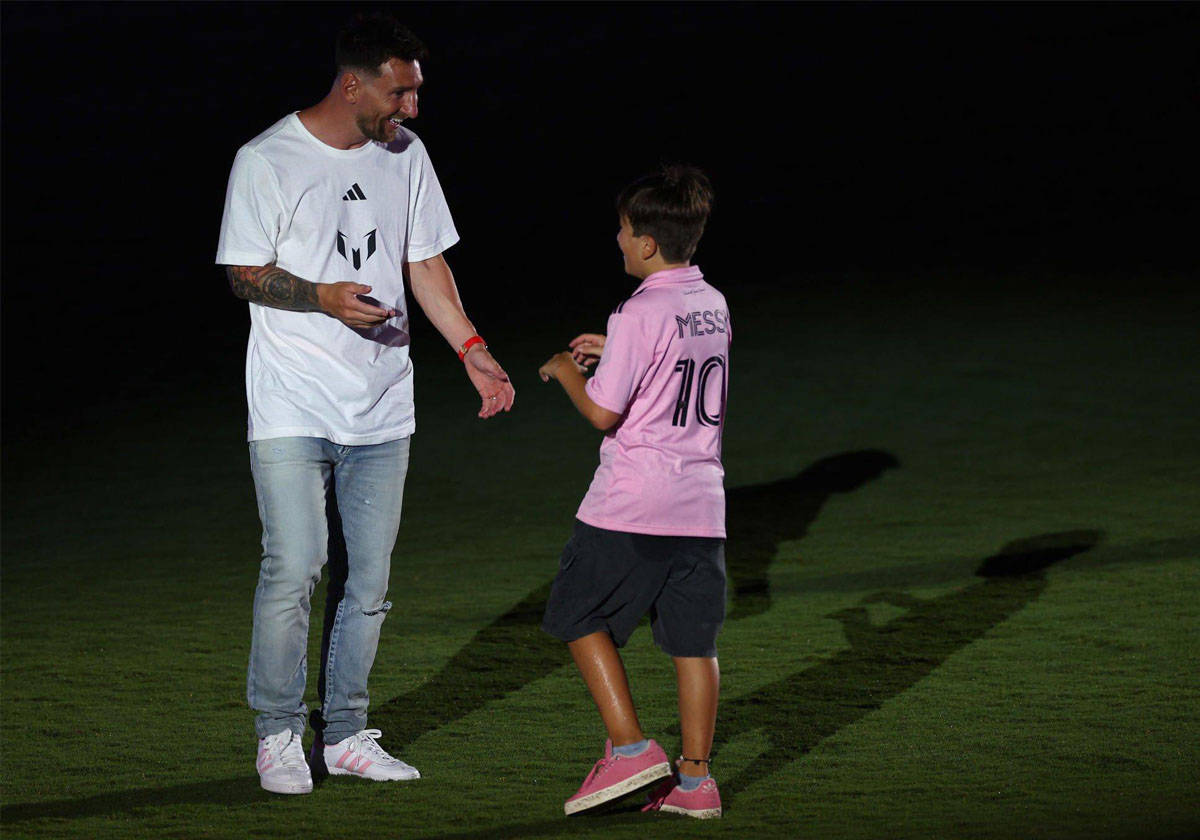 وتداول النشطاء عبر منصات التواصل الاجتماعي، مقطع فيديو يظهر فيه نجل ميسي تياغو، وهو يضع الكرة بين قدمي والده. خلال حفل تقديم والده لاعباً جديداً في صفوف فريق إنتر ميامي الأمريكي بشكل رسمي، الاثنين.