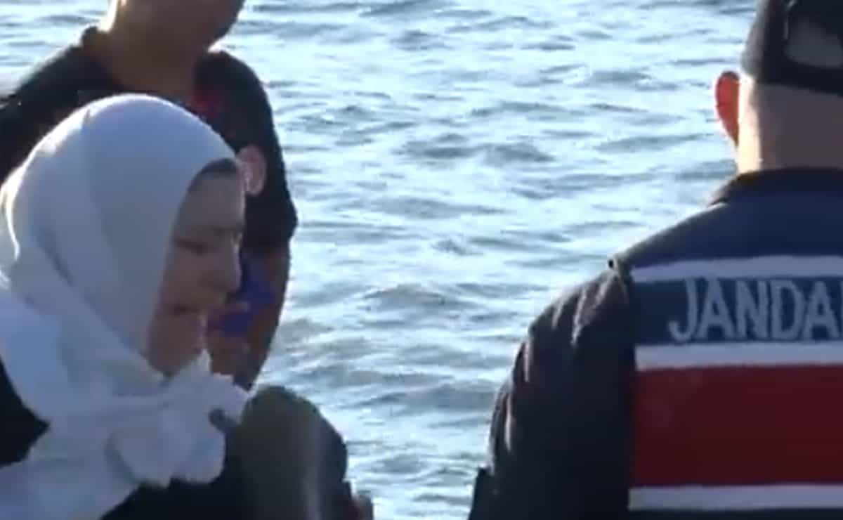 وبدت الأم السورية في مشهد تال وهي تحمل حذاء أحد أطفالها الغرقى وتحاول جمع بقاياهم الأخرى، فيما بدت في مشهد تال وهي جاثية وتنتحب.