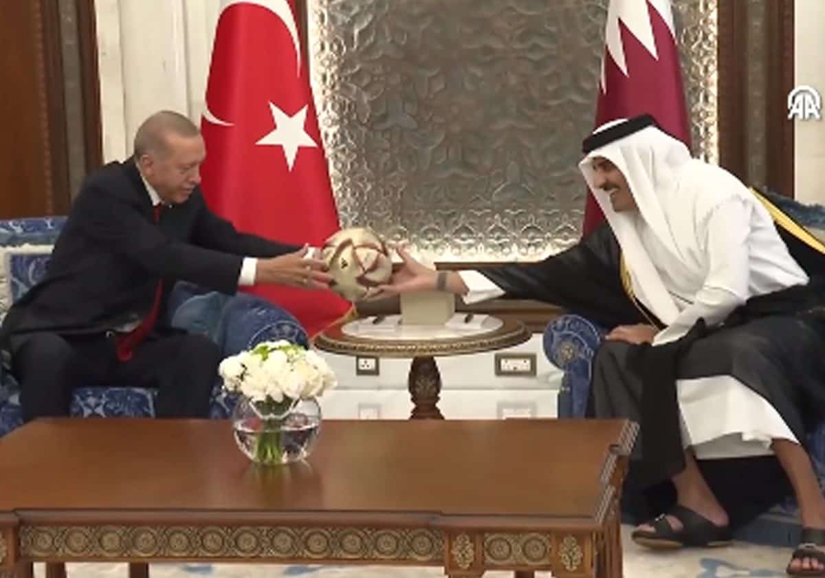 أمير قطر يطلع أردوغان على كرة نهائي المونديال بتوقيع ميسي