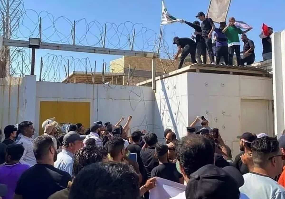 وأظهرت سلسلة من مقاطع الفيديو التي نُشرت على مجموعة تليغرام ، تجمع الناس حول السفارة حوالي الساعة الواحدة صباح يوم الخميس وهم يهتفون بشعارات مؤيدة للصدر ويقتحمون مجمع السفارة بعد حوالي ساعة.