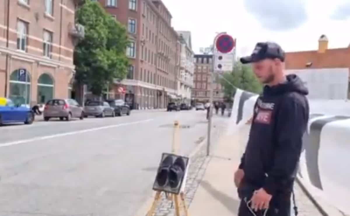 وأظهر الفيديو المتداول، المتطرف الدنماركي وهو يستعد لإضرام النيران في نسخة من المصحف الشريف، ووضع عليه الحذاء في رسالة بأنه يهين هذا الكتاب المقدس.