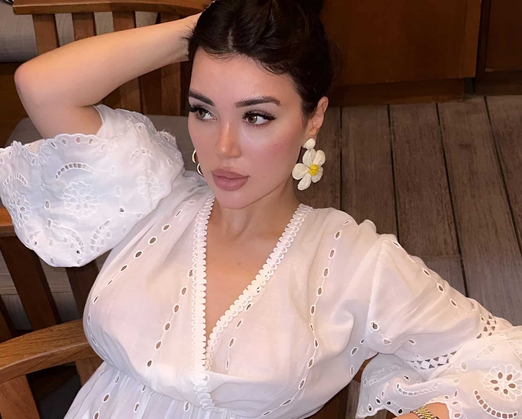 وظهرت عفراء حمشو في الصور التي نشرتها عبر انستغرام بفستان أبيض قصير، يكشف ملابسها الداخلية بشكل واضح.