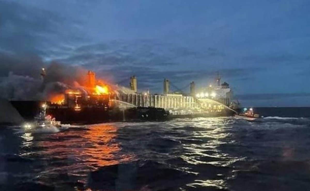 وقال متحدث باسم خفر السواحل إن سيارة كهربائية كانت مصدر الحريق، مضيفا أن السفينة ما زالت تحترق.