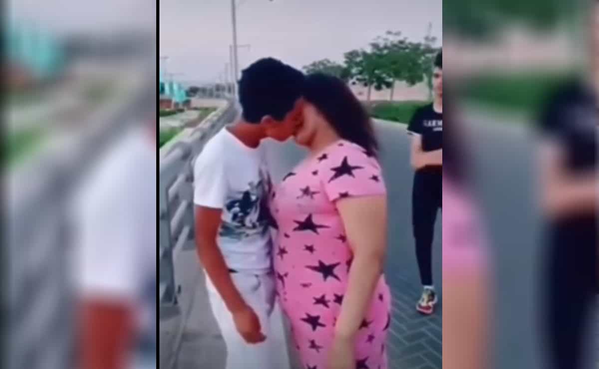 وبحسب الفيديو الذي كان عبارة عن مشهد تمثيلي، اقترب مراهق ثاني منهما معترضا على ما يفعلانه لتقوم الفتاة بجذبه نحوها وتقبيله قبلة غرامية هو الآخر.