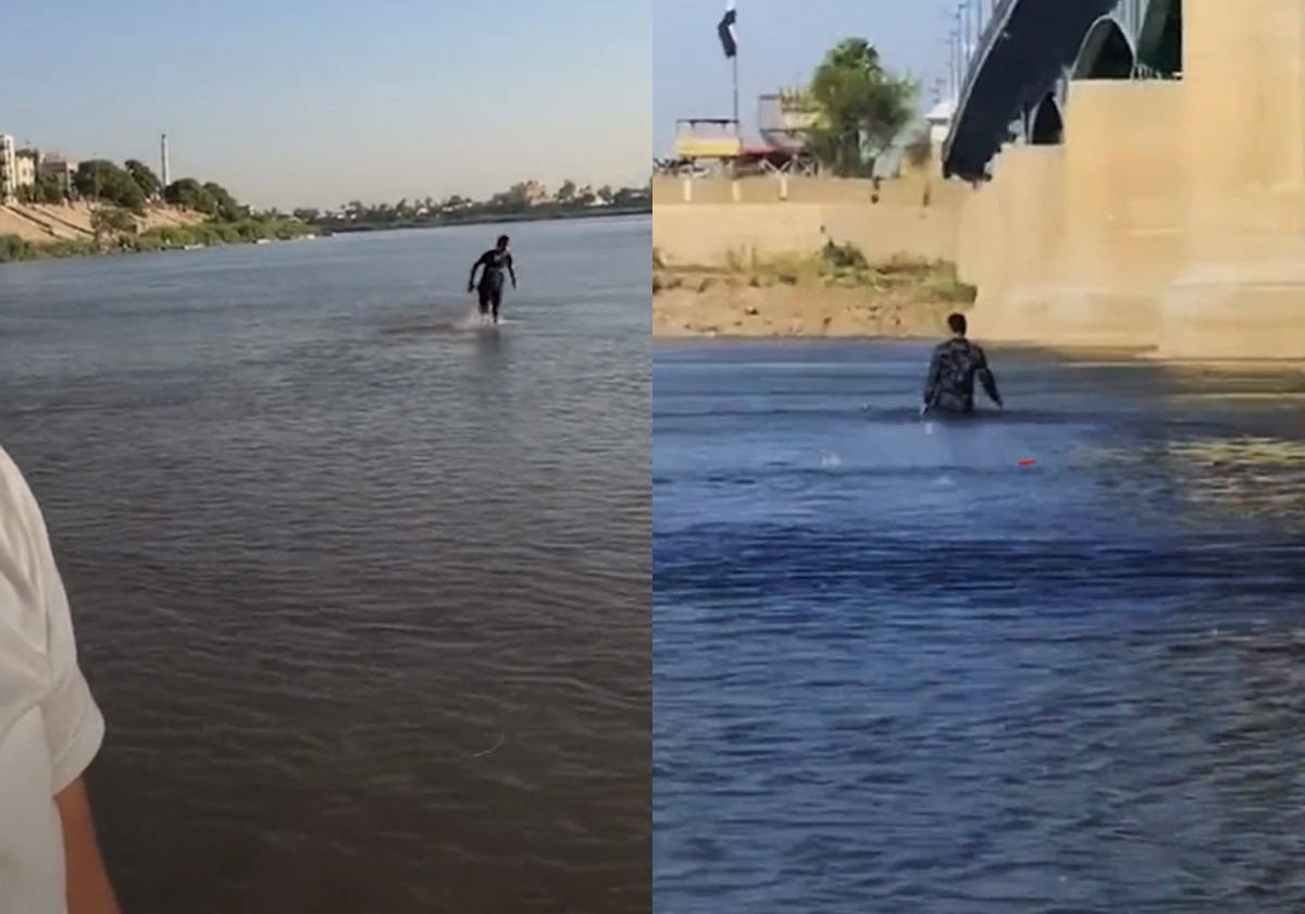 المقاطع التي رصدتها (وطن) أظهرت العراقيين وهم يعبرون نهر دجلة سيرا الأقدام، بما يكشف عن مستوى الماء فيه ودرجة الجفاف التي تعاني منها البلاد.