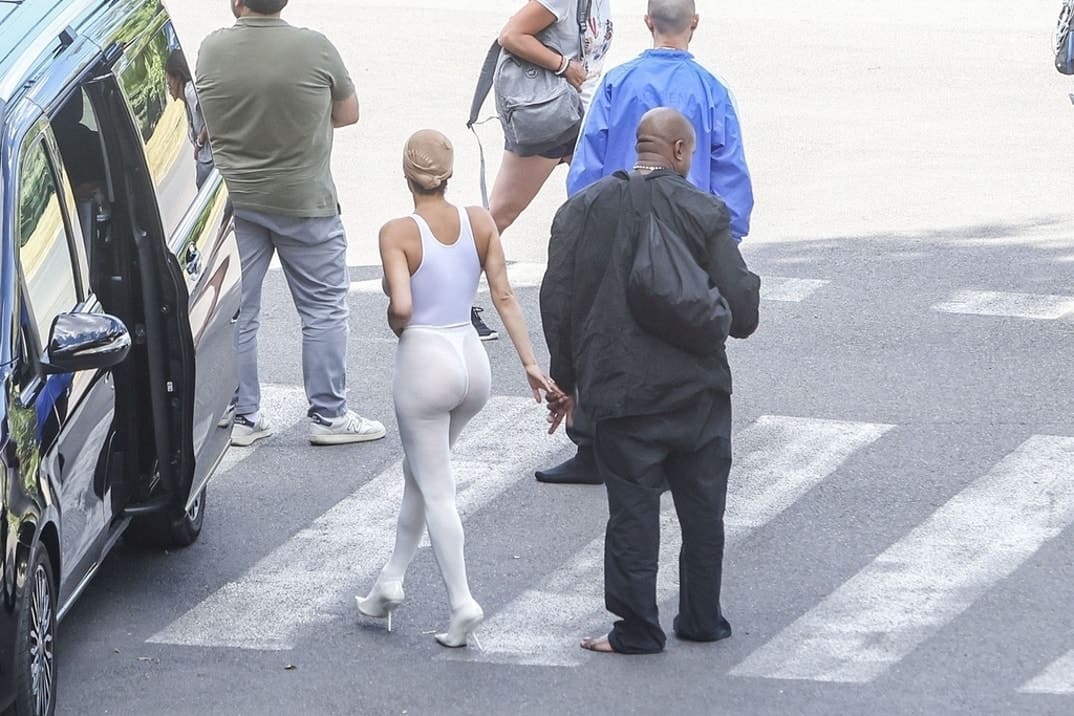 وظهر كاني ويست في الصور التي نشرها موقع tmz المختص بنشر أخبار المشاهير، حافي القدمين، وبملابس (جاكيت وبنطالًا) سوداء غريبة، بينما كانت زوجته بيانكا سينسوري ترتدي ملابس شفافة فاضحة تكشف صدرها ومؤخرتها بكل وضوح.