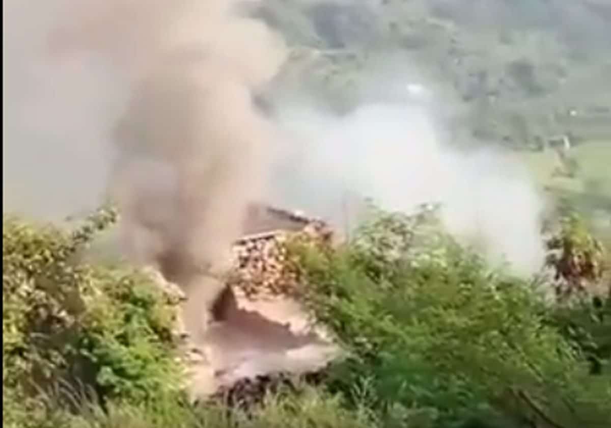 ووثّق مقطع الفيديو، ما وُصِفت بأنها اللحظات الأولى لعملية تفجير المنزل، فيما سُمعت أصوات الصرخات تنهال من جراء تفجير المنزل.