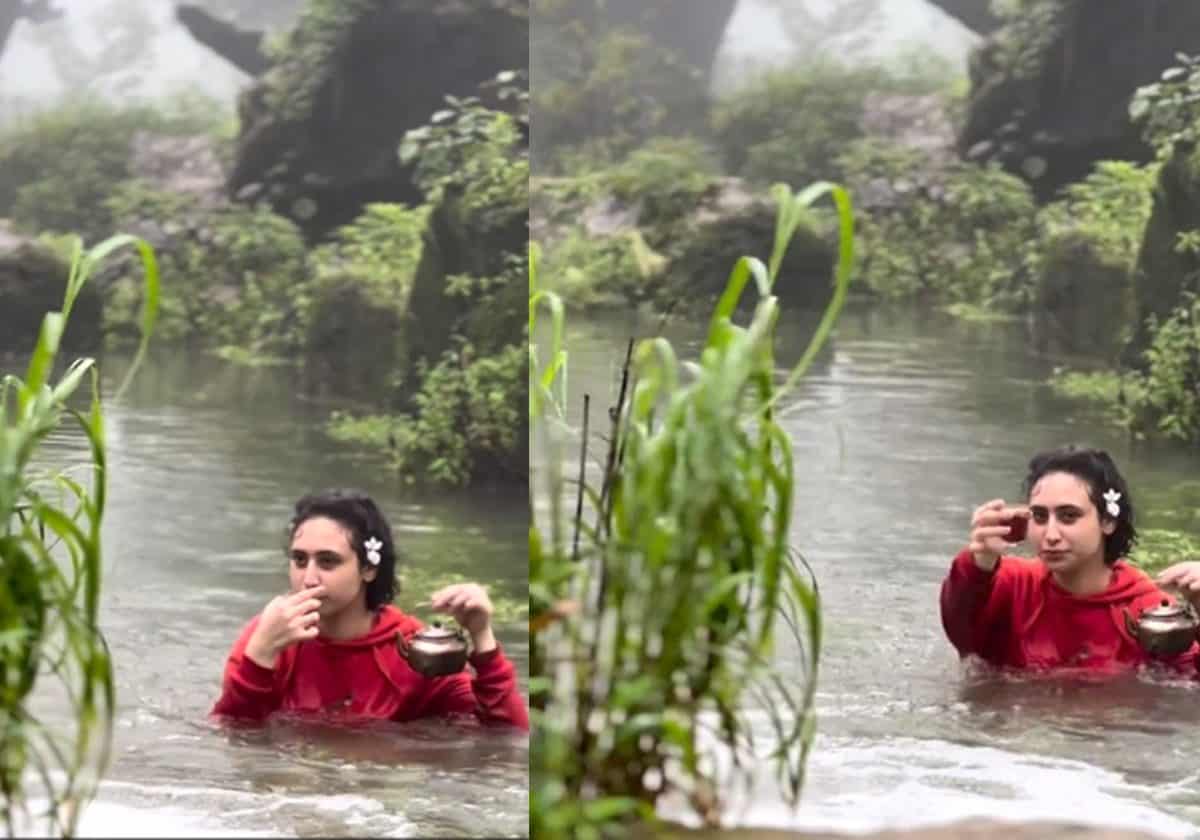 وشاركت “لينا خالد” مقطع فيديو لها -قصير- وهي تحتسي الشاي بينما كانت بالكاد مغمورة بالماء بالقرب من إحدى العيون الجارية على حافة صخرية في ظفار.