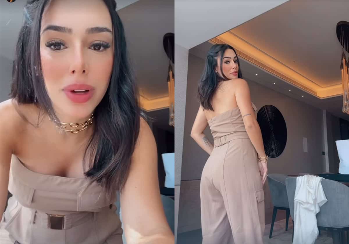 وعبر حسابها الرسمي بانستغرام من خلال خاصية “الاستوري”، نشرت زوجة نيمار مقطعا مصورا استعرضت فيه الزي الذي ترتديه والذي ستقابل به الجمهور السعودي لأول مرة.