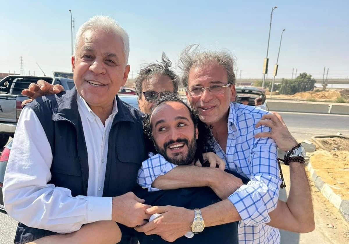 كما ظهر بجانب أحمد دومة، السياسي المصري البارز حمدين صباحي، المرشح الرئاسي السابق، وعدد من أفراد أسرة دومة.