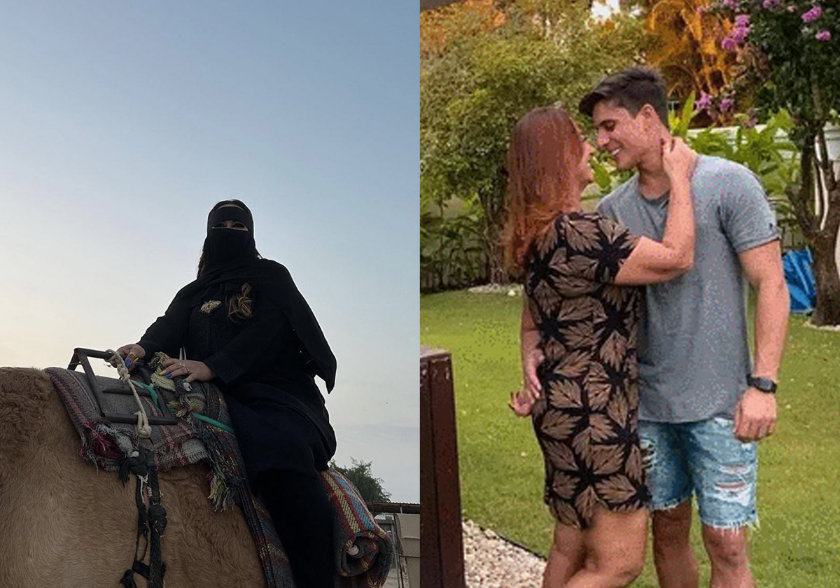كما ظهرت “نادين سانتوس” في صور أخرى، وهي تمتطي جملا سعوديا وتقوم بجولة سياحية في المملكة.