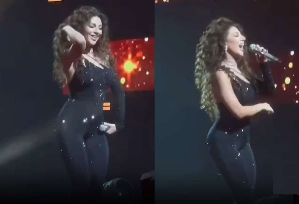وفي مقطع فيديو، ظهرت ميريام فارس وهي تستعرض جسدها بإثارة، على المسرح، وأخذت تؤدي رقصة المؤخرة بجرأة أمام الحضور .