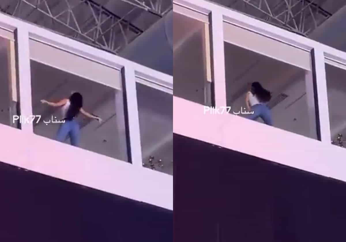 وفي مقطع الفيديو الذي لم يعد غريباً في بلاد الحرمين الشريفين ظهرت فتاتان خلال ما عرف بموسم “الجيمرز” في منطقة بوليفارد رياض سيتي، وهما تلبسان ثياباً فاضحة، وتطلان من زجاج قاعة علوية.