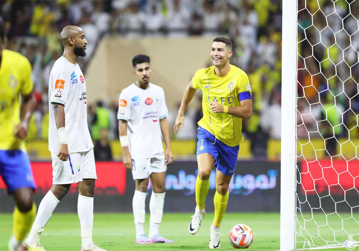 وطن- سجل النجم البرتغالي كريستيانو رونالدو، قائد فريق النصر السعودي، الهاتريك داخل مرمى شباك الفتح في ختام منافسات الجولة الثالثة من دوري روشن السعودي للدرجة الممتازة لكرة القدم.