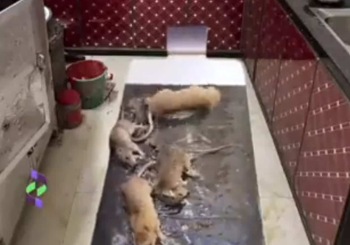 وبيّن الفيديو، لاصقا كبيرا وُضع من أجل الإمساك بالفئران، وبينما كانت تتحرك في المطبخ، لُصِقت الفئران التي بدت بأحجام متنوعة بين صغيرة ومتوسطة وضخمة.