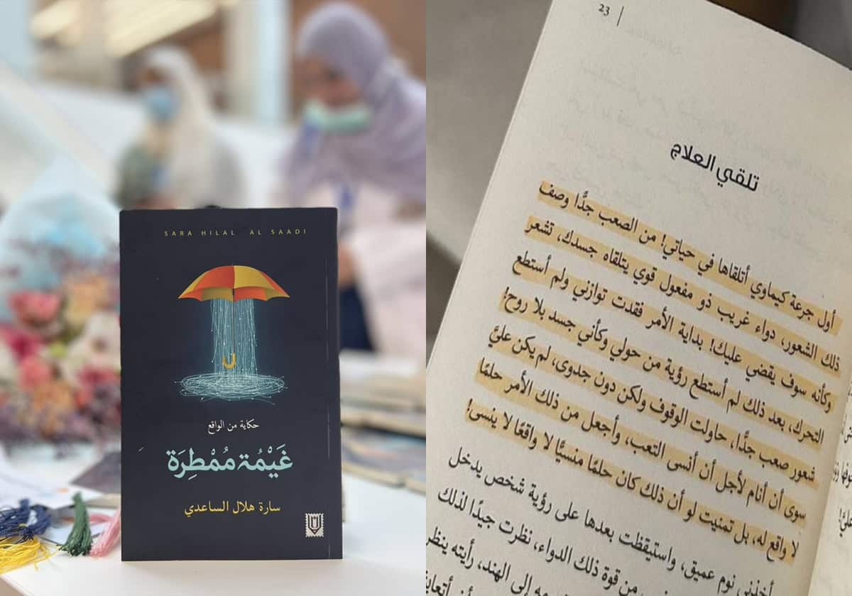 وتابعت “سارة” أن كتاب “غيمة ممطرة” جاء كرسالة تحمل في طياتها الأمل والتفاؤل لكل شخص مريض يحتاج إلى مصدر يبعث فيه الحب للحياة والإيجابية.