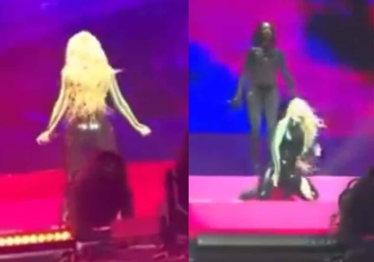 حركات المغنية الإباحية الإسبانية العنيفة وهي ترتدي هذه الأزياء الضيقة جدا، هي السبب على الأرجح وراء تمزق سروالها بهذا الشكل المحرج على خشبة المسرح.