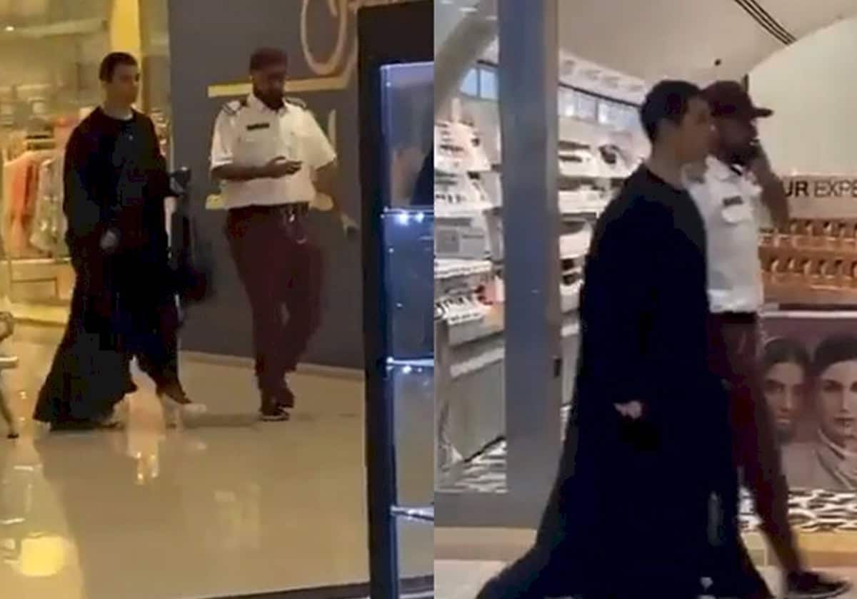 وكان الفيديو المتداول الذي انتشر كالنار في الهشيم أمس، الاثنين، وصورته سيدة سعودية في المول، أظهر شابا وهو يمشي بعباءة نسائية ويرتدي “الطعب العالي” إلى جانب رجل آخر يرتدي ملابس رجل أمن.