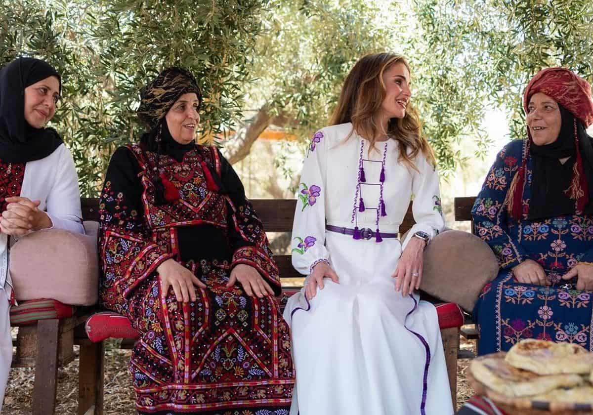 فستان الملكة رانيا يخطف الأنظار أثناء زيارتها لمطبخ فريال