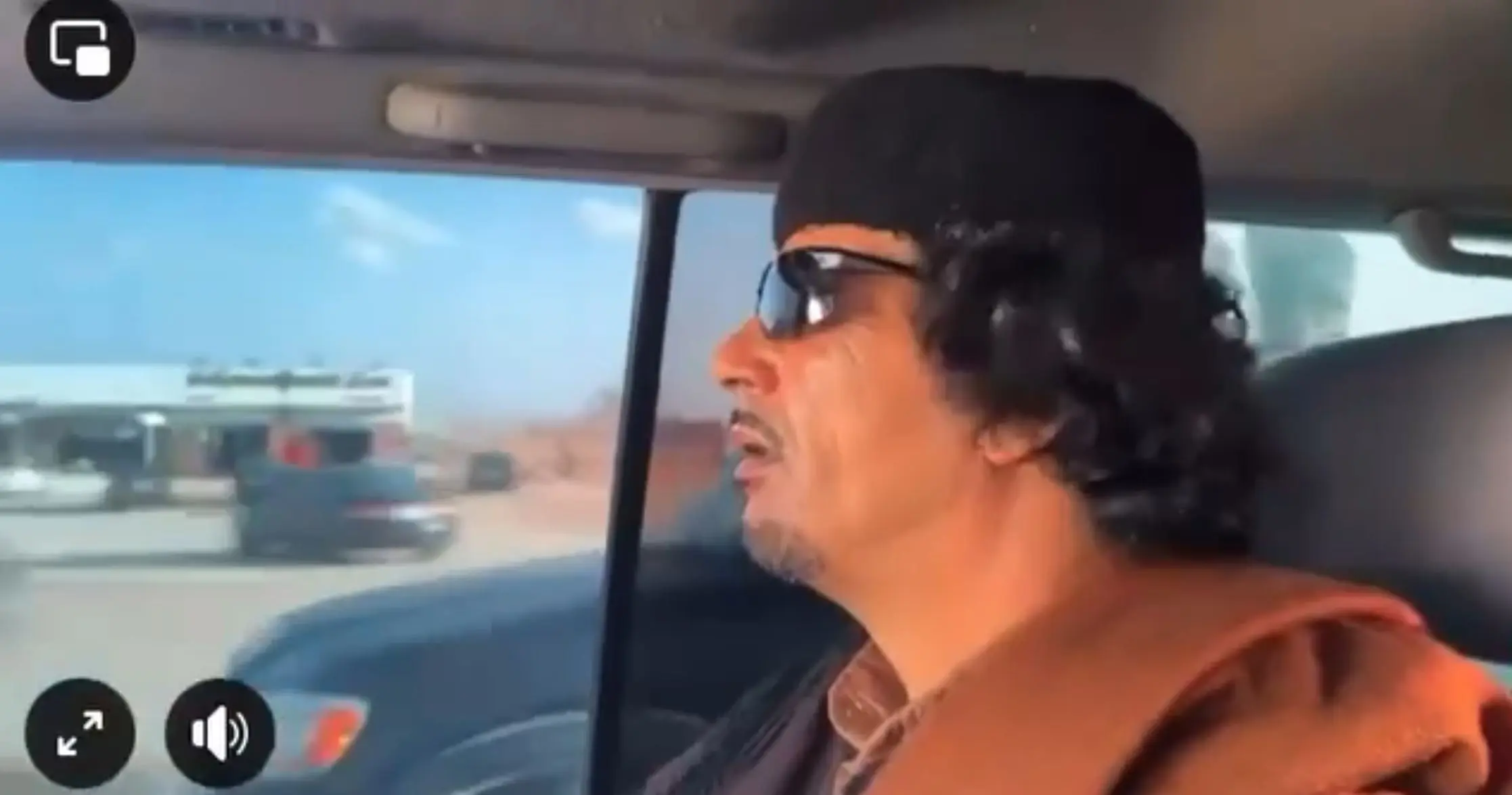 وبحسب مقطع فيديو آخر، فقد ظهر شبيه القذفي من داخل السيارة وهو يتجول في الشوارع ويؤدي حركة قبضة اليد الشهيرة بالزعيم الراحل.