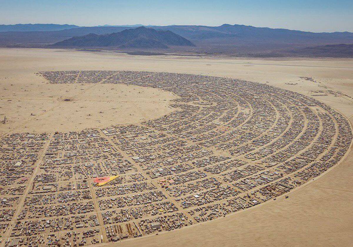 ومنذ تسعينيات القرن الماضي، أقيمت هذه الفعالية في صحراء بلاك روك، وهي منطقة محمية في شمال غرب ولاية نيفادا، وتعهّد المنظمون بالحفاظ عليها، ويقام الحدث في الهواء الطلق، بوضوح، على شكل أرض وعرة لا يمكن سلوك مساراتها.