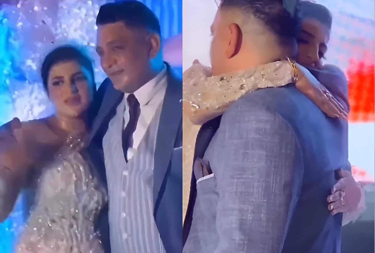 ثم نهضت الفتاة وقامت باحتضان وتقبيل عريسها الذي لم يمانع تقبيل قدمه.