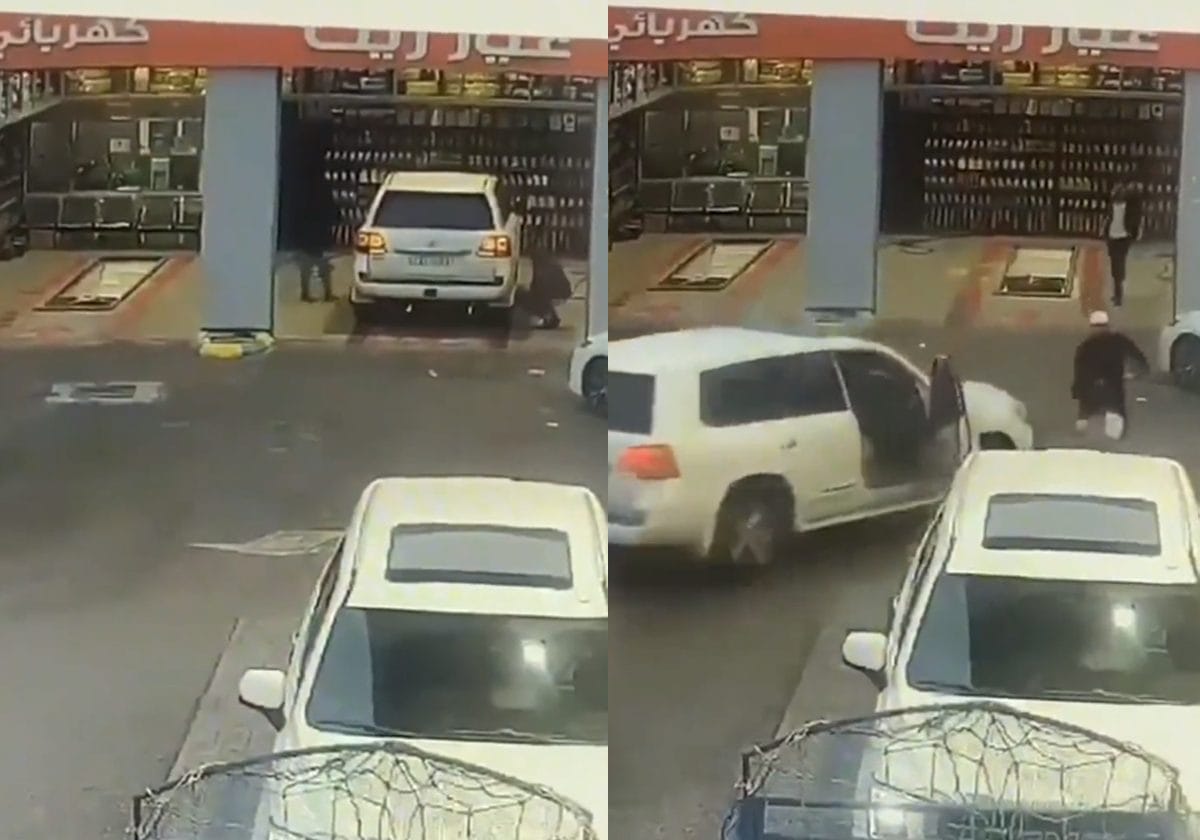 وكان مالك السيارة يهم بتعبئة الإطارات، في حين لم يغلق محركها، فتسلل اللص إلى داخل المركبة، واستطاع أن يسرقها في غضون ثوان معدودة في مشهد أثار ذهولا.