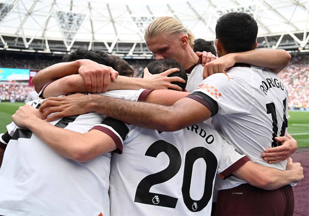 وطن- يتصدر حامل اللقب فريق مانشستر سيتي جدول ترتيب الدوري الإنجليزي الممتاز 2023، بعد فوزه وست هام يونايتد ، وفوز ليفربول على وولفرهامبتون، وخسارة اليونايتد أمام برايتون في منافسات الجولة الخامسة.